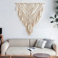 Bringen Sie Wärme und Charakter in Ihr Zuhause mit unserem Liora Skandinavischen Boho Makramee Wandbehang. Dieses handgeknüpfte Kunstwerk verleiht jedem Raum eine Prise Ruhe und Stil. Die feinen Details und das verspielte Muster machen diesen Wandbehang zu einem echten Blickfang, perfekt für das Wohnzimmer, Schlafzimmer oder eine gemütliche Leseecke.