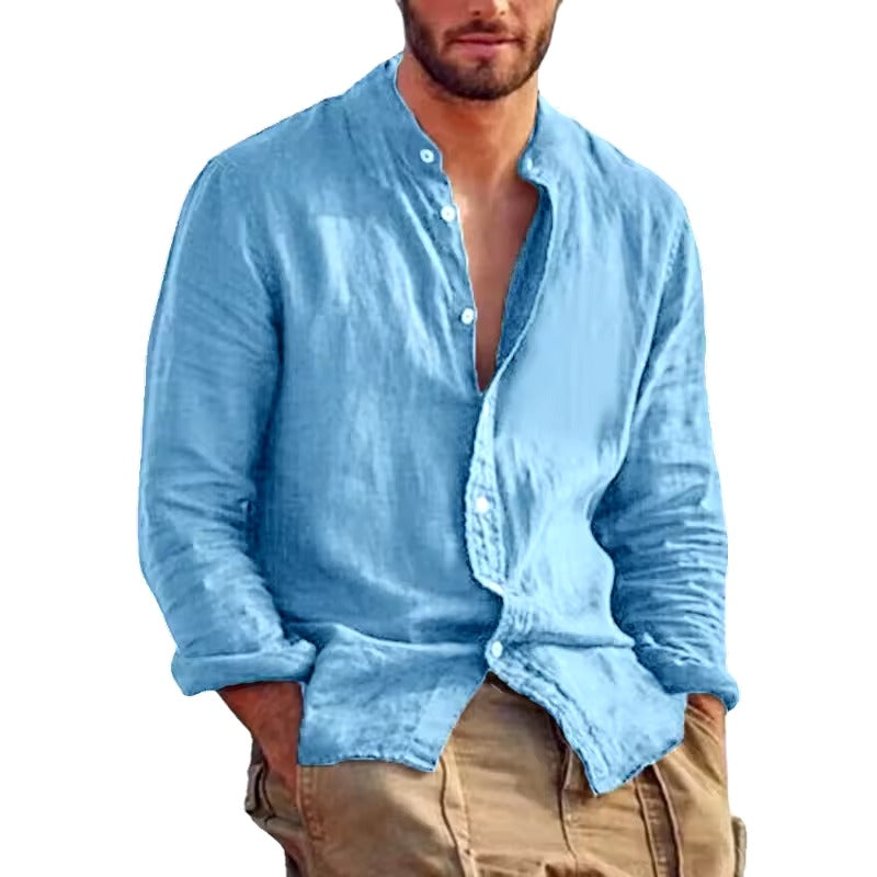 Erleben Sie ultimativen Komfort und zeitlosen Stil mit unseren stilvollen Herren-Leinenhemden. Hergestellt aus einer einzigartigen Mischung aus Baumwolle und Leinen, bieten diese Hemden atmungsaktiven Komfort, der ideal für jede Jahreszeit ist. Sie sind vielseitig genug, um in alltäglichen Freizeitsettings getragen zu werden, können aber auch problemlos für formellere Anlässe gestylt werden. Außerdem sind sie mit einem trendigen Stehkragen und einem eleganten Look entworfen, der Ihre Garderobe auffrischt.