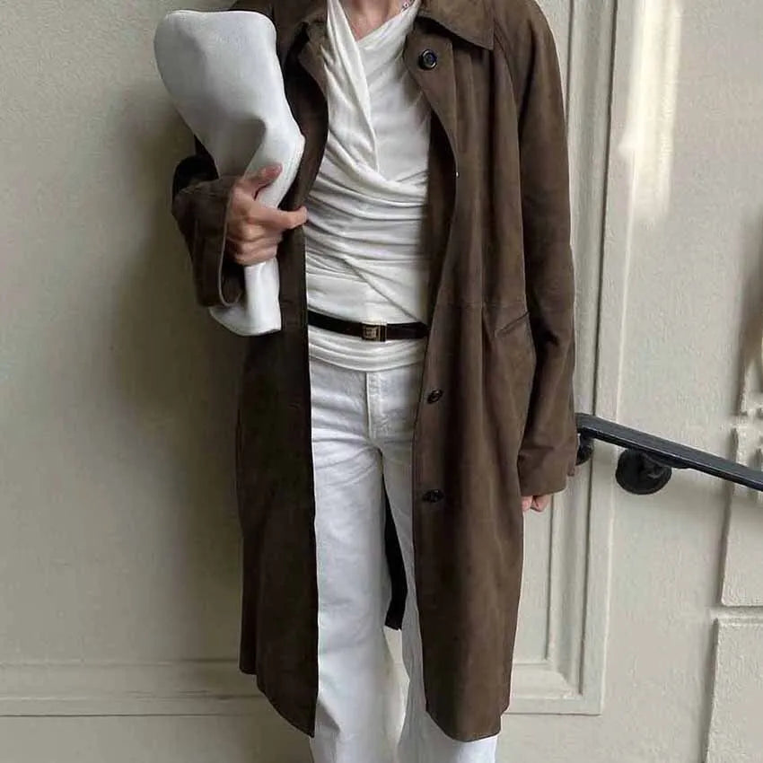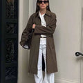 Erlebe jetzt den Luxus des Chic Brown Suede Damenmantels. 30 Tage Geld-zurück-Garantie!