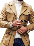 Verleihen Sie Ihrer Garderobe einen Hauch von Eleganz mit der Solid Colour Multi-Pocket Lapel Lace-Up Wool Jacket
