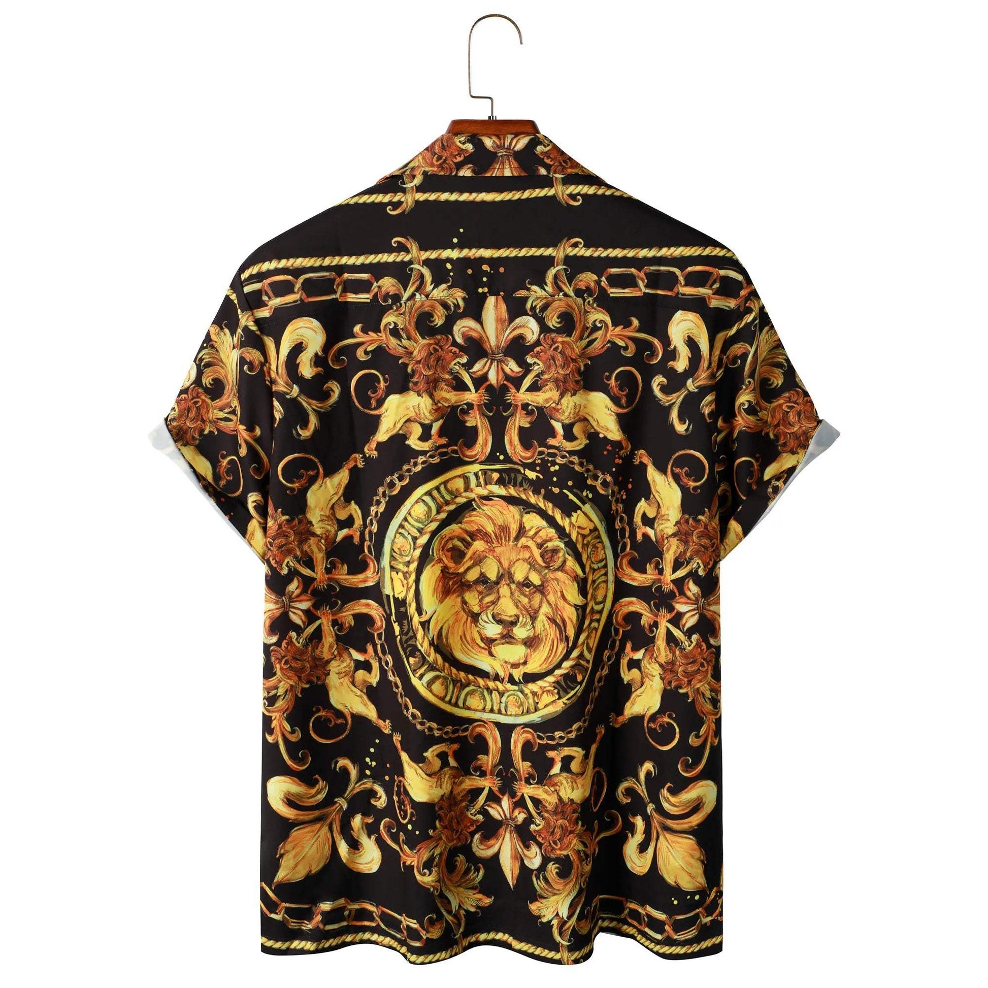 Valenthor – Barock Herrenhemd Löwenprint schwarz-gold – für Abende out