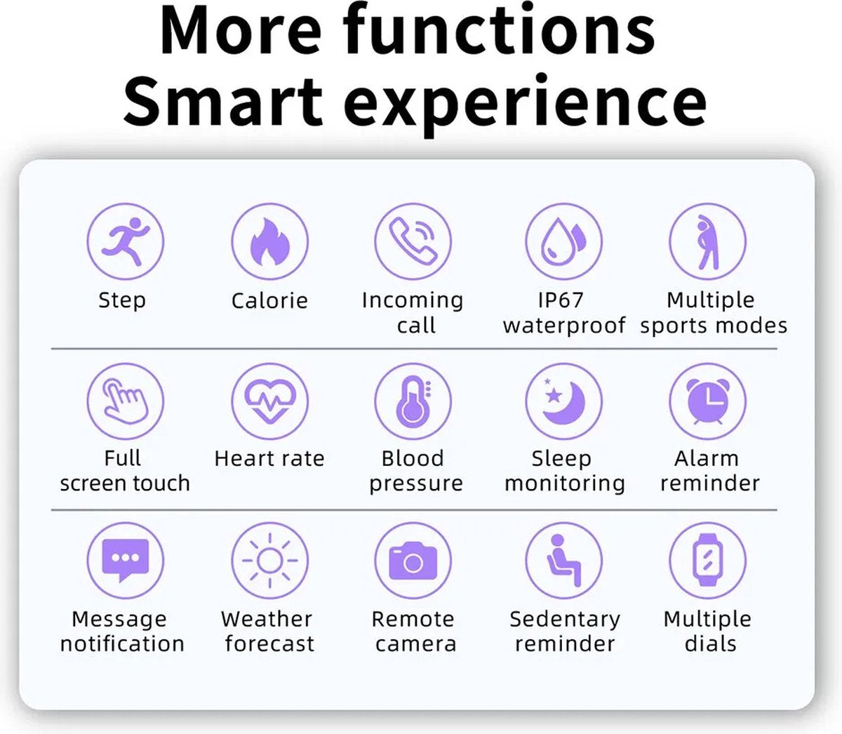 • Funktionen: Schrittzähler, Herzfrequenz, Sättigungs- und Blutdruckanzeige